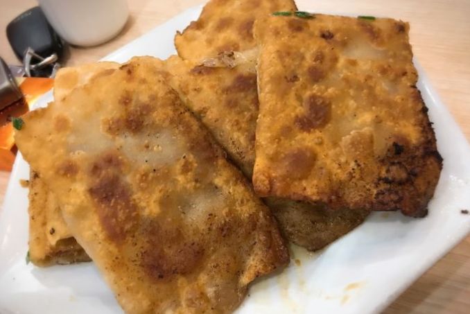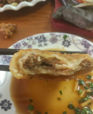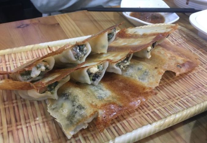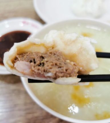 鍋貼底面呈深黃色,酥脆,麵皮軟韌,餡味香美。
