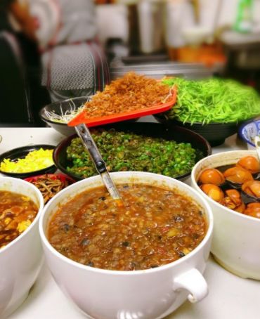 按著早年的講究是要有四碟冷盤、四碟炒菜、四碟面菜、四碟面碼
