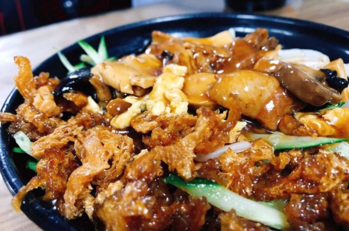 綠豆做的鍋巴,雞蛋澱粉的滷子