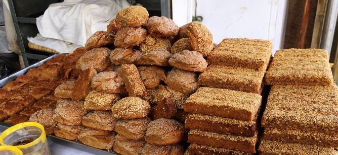 這家糖果子是我吃過最好吃的,沒有之一!是老味,以前還是好大個切完按斤稱的了,那陣面更厚實,糖也多……現在都改成正常大小的了,大的2.5一個,小的1.5,前幾天買的時候問了一下,還可以做大的,提前預約就行