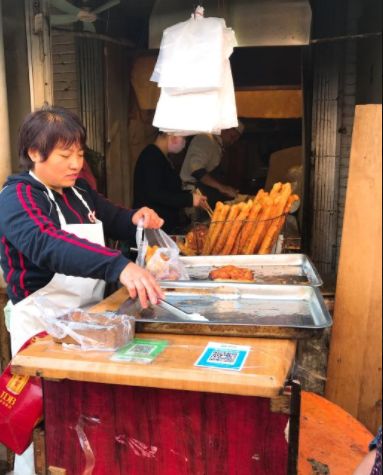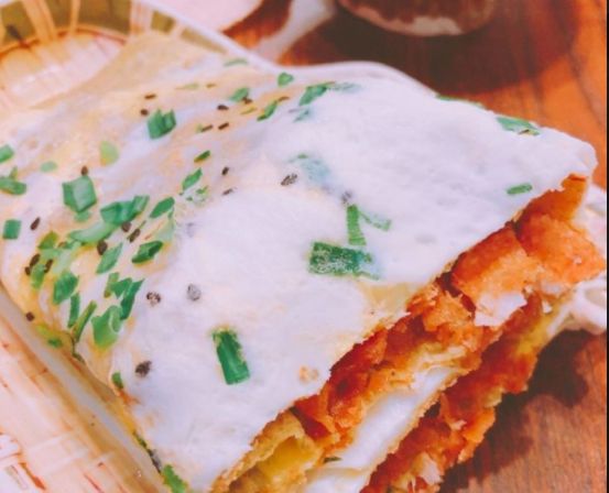 就在五大道上,煎餅裡面夾的是薄脆,趁熱吃的話薄脆特薄特脆,好評!如果放一會的話薄脆變軟了口感就會差很多,要是不是立刻吃的話,老大爺說可以把薄脆跟餅分開打包,回去再自己夾上用微波爐叮一下就可以